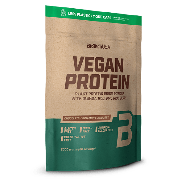 vaníliás sütemény: borsófehérje izolátum, rizsfehérje, L-glutamin, aromák, ízfokozó (glicin és nátriumsója), L-arginin, emulgeálószer: lecitinek (szója), quinoa liszt 1,6%, sűrítőanyagok (karragén, cellulózgumi), goji bogyópor 1,1%, acai bogyópor 0,6%, étkezési só, fahéj, édesítőszer (szukralóz).